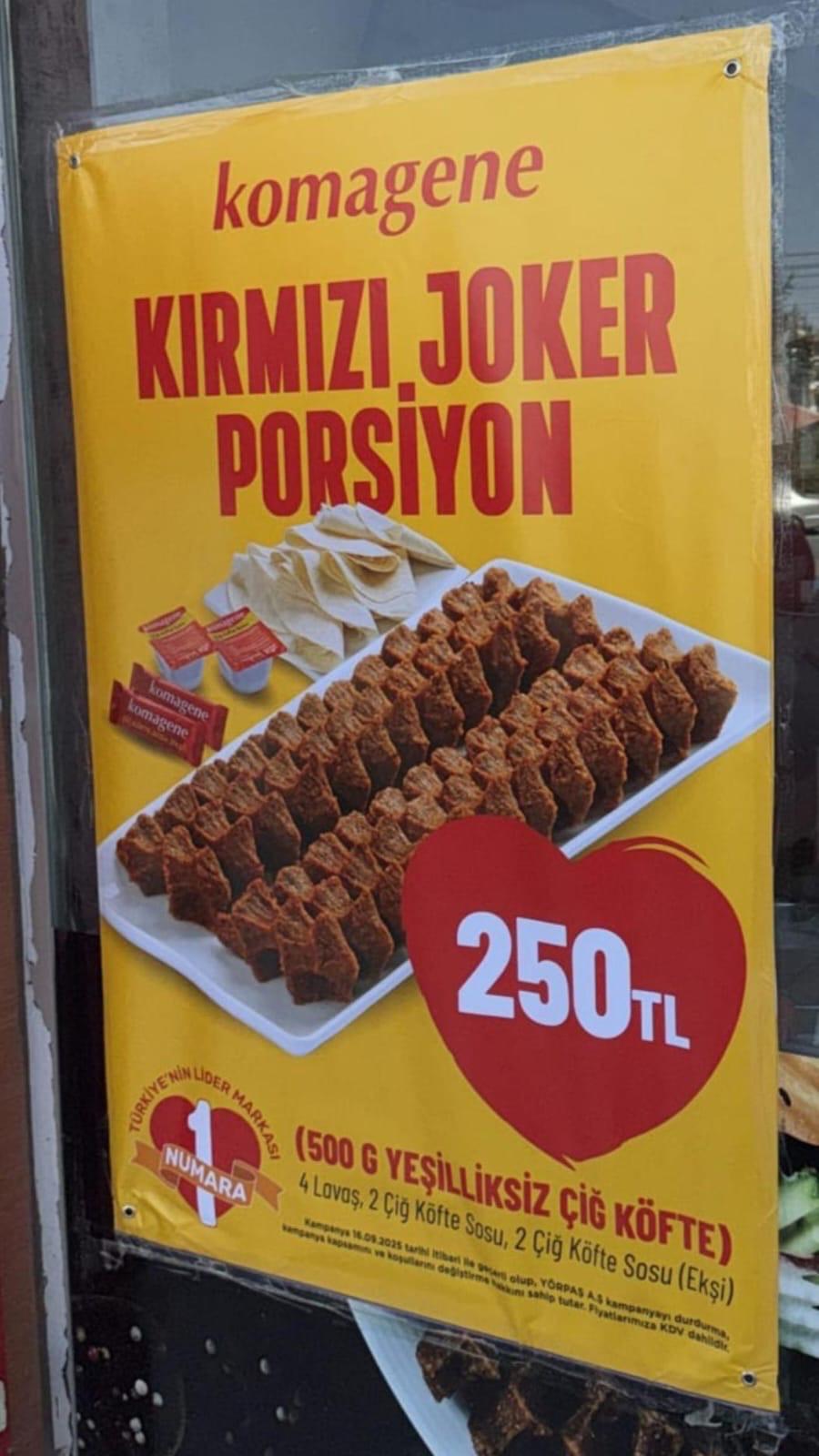 Şanlıurfa Karaköprü’de hizmet veren Komegene Çiğ Köfte şubemiz, lezzetiyle fark yaratan ürünleriyle bölgenin vazgeçilmez adreslerinden biridir. Geleneksel çiğ köfte lezzetini modern sunumlarla buluşturduğumuz menümüzde; Çiğ Köfte Dürüm, Oburgene, Pilav Üstü Tavuk Döner (250 g), Çiğ Köfte Tako, 1 kg, 200 g ve 500 g Joker Porsiyon seçenekleriyle her damak zevkine hitap ediyoruz. Ayrıca Eti Crax – Chili Lime Çiğ Köfte Dürüm, Double Dürüm, Doritos’lu Çiğ Köfte Dürüm ve Favori Double Dürüm gibi yenilikçi tatlarımızla çiğ köfte deneyimini bir üst seviyeye taşıyoruz. Hijyenik ortamda hazırlanan ürünlerimiz, taze malzemelerle günlük olarak servis edilmektedir. Müşteri memnuniyetini ön planda tutan anlayışımızla, hızlı servis ve güler yüzlü hizmet sunuyoruz. Karaköprü’de çiğ köfte denince akla ilk gelen adres olmak için çalışıyor, lezzet tutkunlarını her gün şubemize veya siparişlerinizi bekliyoruz.